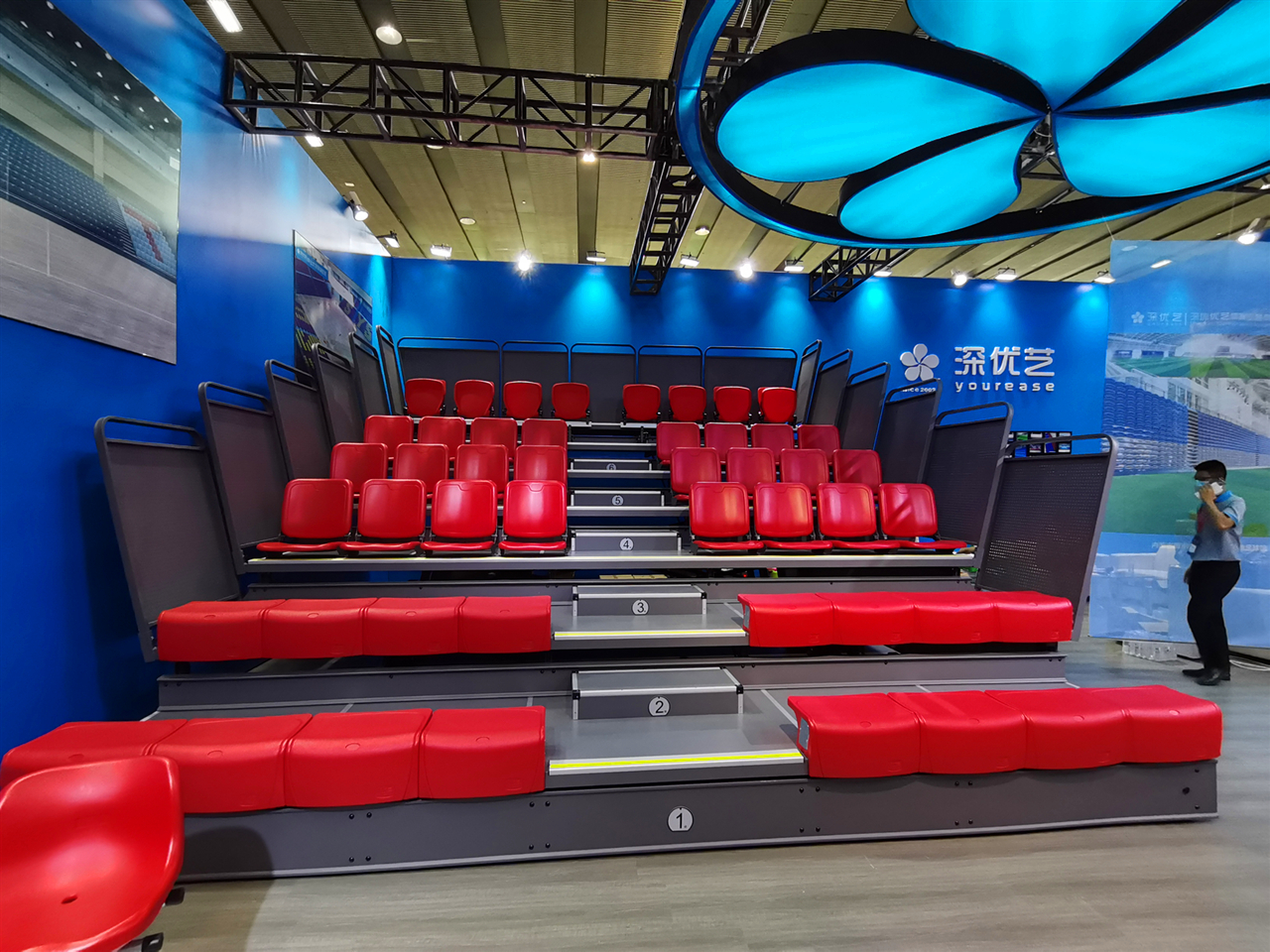 優(yōu)藝體育現(xiàn)場展示的不同類型座椅的活動看臺解決方案大獲好評